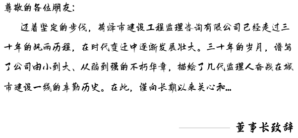 菏澤市建設監理公司成立于1993年6月,于2019年6月升級為“菏澤市建設工程監理咨詢有限公司”,具有房屋建筑工程監理甲級、市政公用工程監理甲級、化工石油工程監理乙級、機電安裝工程監理乙級、通信工程監理乙級、電力工程監理乙級及人防工程監理丙級資質,是一家國有獨資企業,公司下設單縣、東明、鄄城、曹縣建設、曹縣磐石、成武、定陶、青島平度、安徽阜陽、深汕特別合作區十個分公司及海南、新疆兩個辦事處...